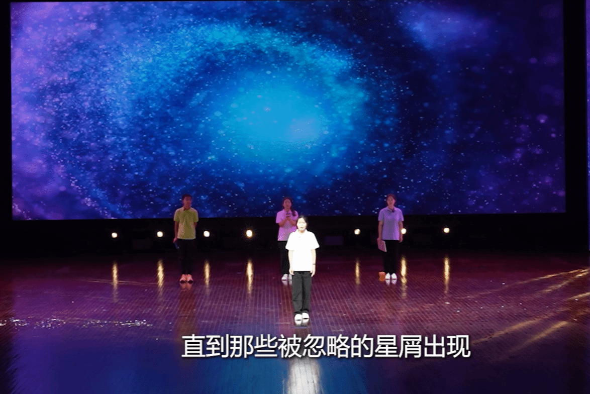 心理情景剧作为我校心理健康教育的品牌活动之一,以其寓教于剧、重在体验与互动参与的独特优势,深受学生喜爱。《星屑回声》聚焦当代大学生人际交往心理议题,生动刻画了主人公陈默因内心压力而自我封闭,甚至将朋友关怀拒之门外的状态。转机出现在一场专业的心理辅导中,心理老师借助“空椅子”技术,引导她直面内心的创伤与阴影,呐喊出对亲情关怀的深层渴望。作品艺术地呈现了一场与内心阴影的艰难角力,最终在老师的专业陪伴与朋友们如“星屑”般微小却坚定的温暖中,主人公逐步学会触碰伤口、接纳自我,完成了在废墟之上重建个人价值与声音的成长之旅。