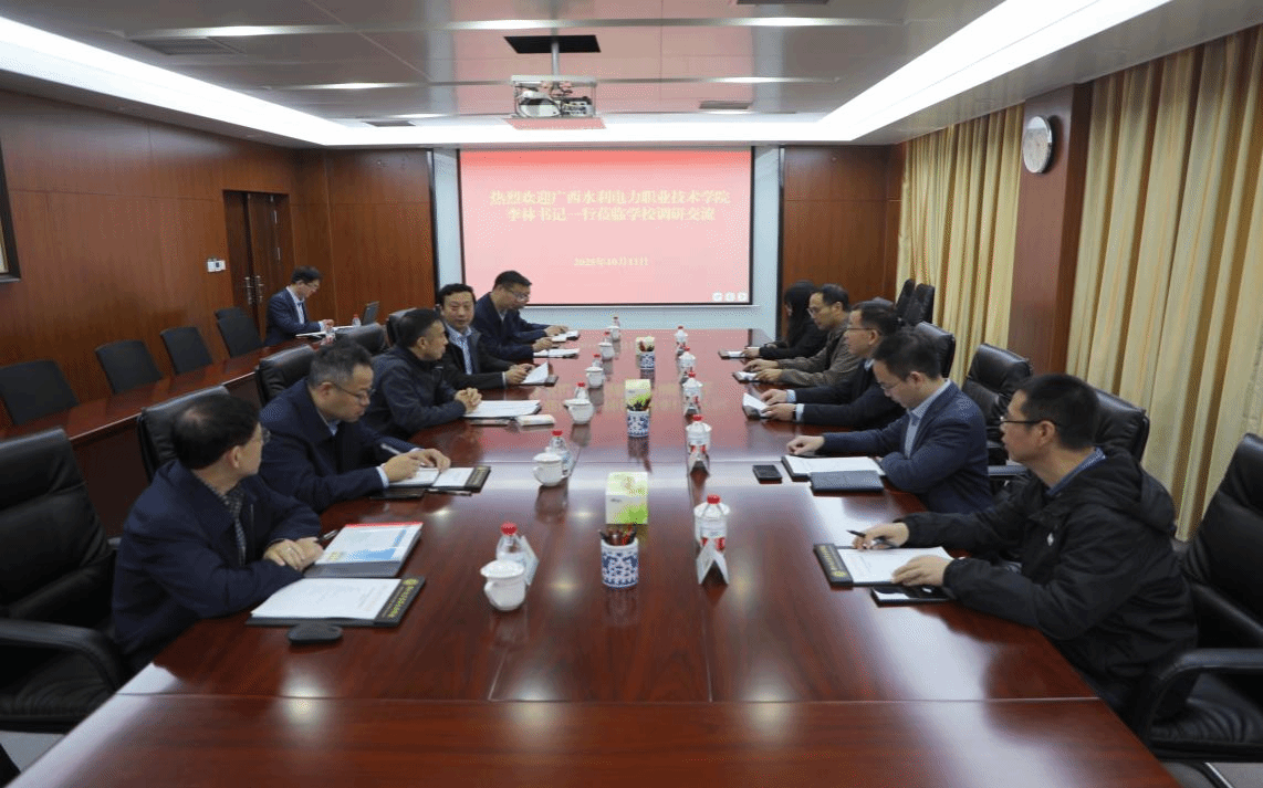 10月11日,广西水利电力职业技术学院党委书记李林一行来校调研交流,校长刘全玺、副校长杨小琨及相关部门负责同志陪同调研并参加座谈。