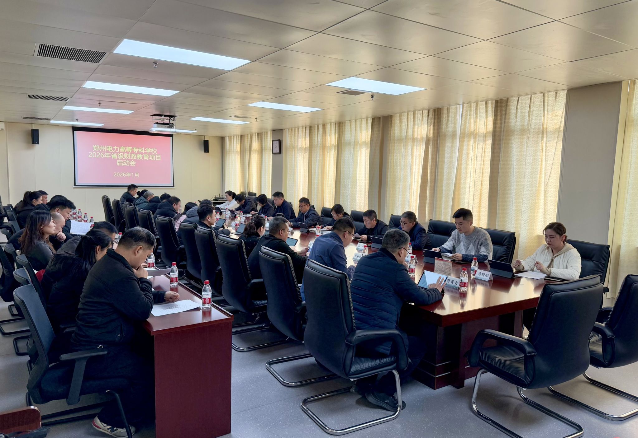 1月6日上午,学校召开2026年省级财政教育项目启动会,旨在进一步规范项目实施管理、最大化发挥财政资金效益,为学校高质量发展注入强劲动力。学校党委委员、副校长黄鹏出席会议,职业教育研究中心(发展质量部)、办公室(党委办公室)、财务资产部、纪委办公室(合规审计部)、后勤服务中心等部门负责人及相关工作人员,各项目负责人、项目所在部门负责人及项目归口管理部门负责人参会。