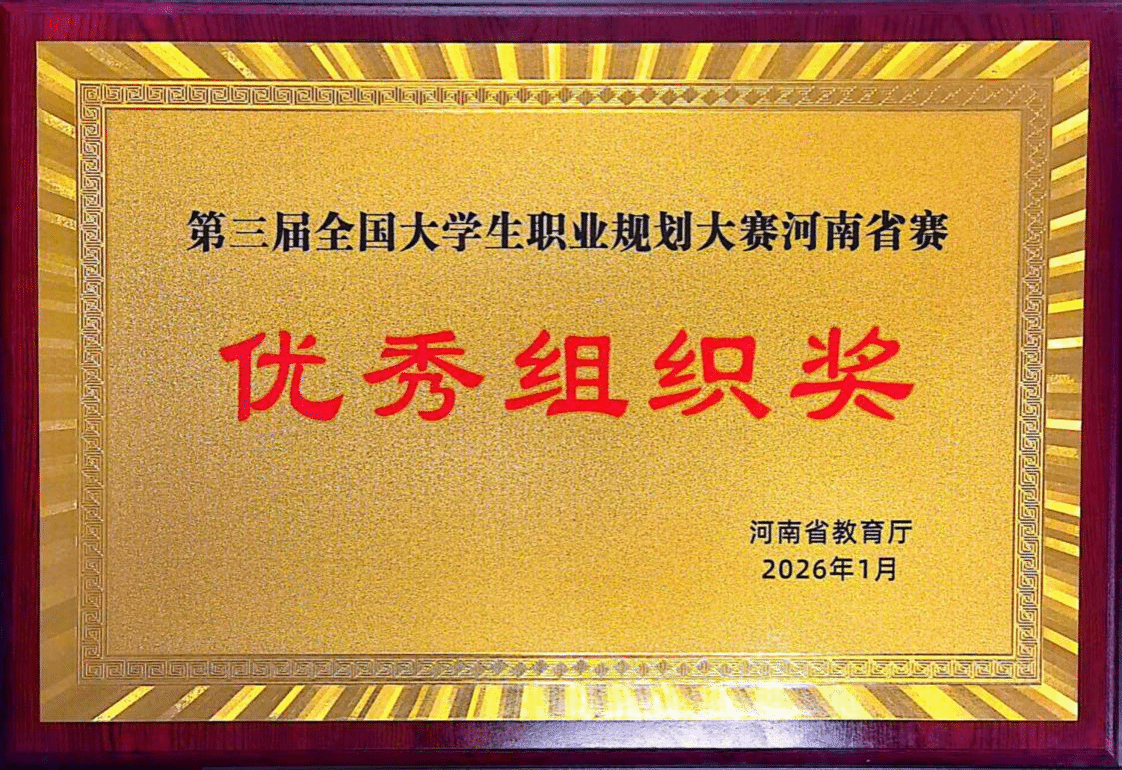 1月28日,第三届全国大学生职业规划大赛河南省赛颁奖典礼在洛阳师范学院圆满落幕。学校共有7个项目入围省赛,荣获金奖3项、银奖3项、铜奖1项,学校同时获评大赛“优秀组织奖”,并作为高校代表上台领奖。这一优异成绩充分展现了学校在职业生涯教育方面的扎实工作和育人实效。