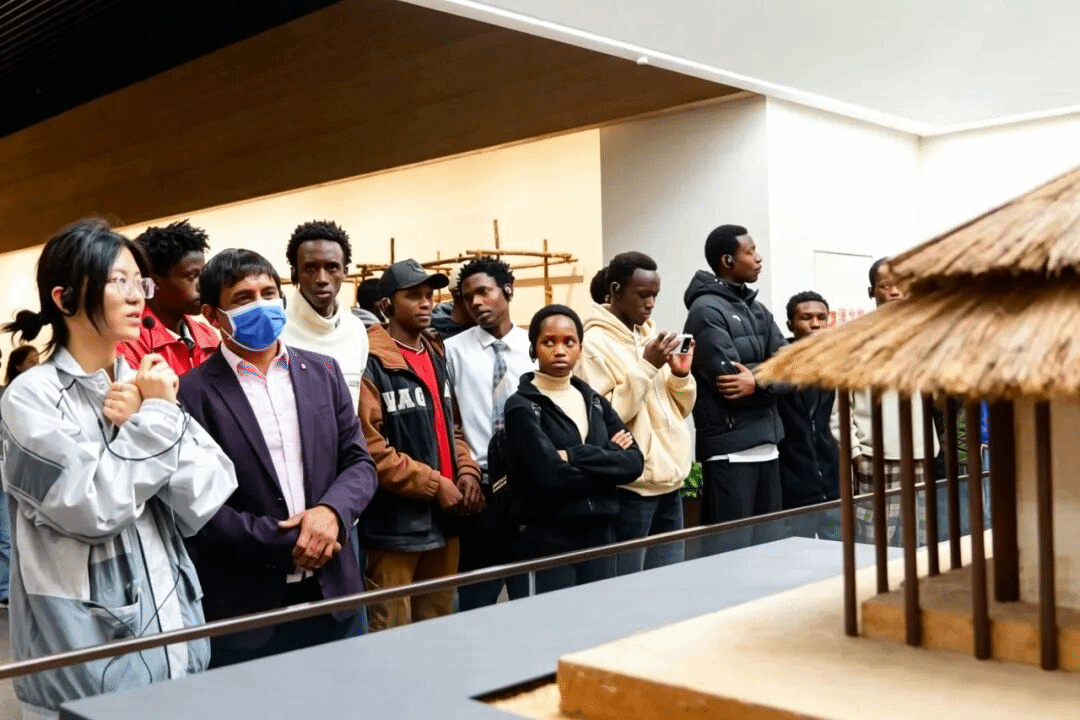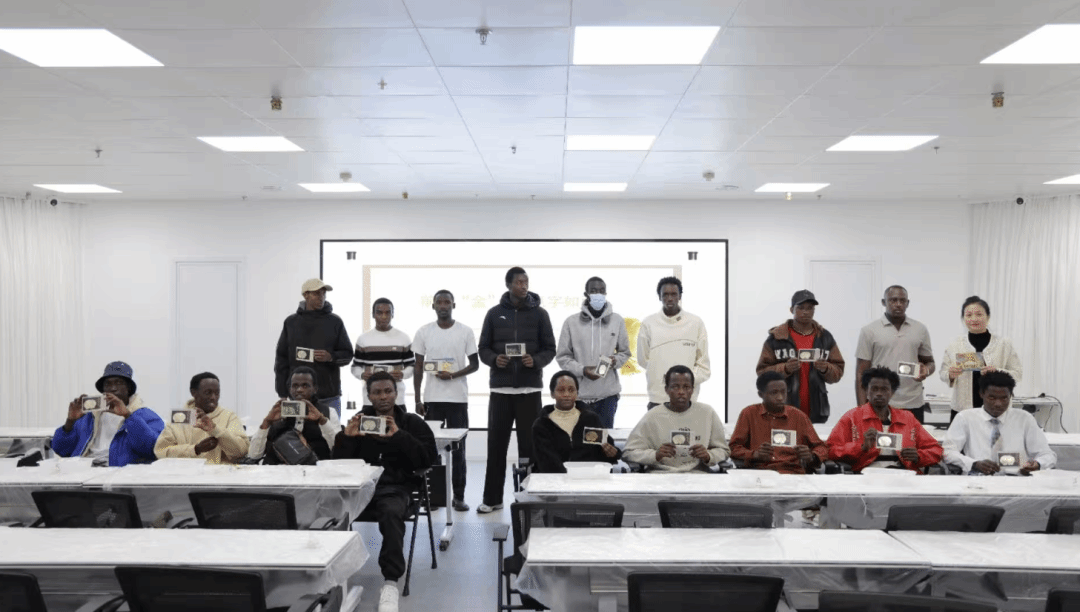 学校 17 名卢旺达留学生走进郑州商代都城遗址博物院,参观了博物院常设展览,了解了郑州商城的都城布局、礼制文化及近年来重要考古发现,近距离感受商代文明,探寻中原历史文脉,在文物与场景中读懂华夏文明的厚重。参观结束后,学生们现场体验金覆面主题贴金明信片手工制作,在动手实践中感受传统工艺魅力,沉浸式体悟中原文化底蕴。活动中学生们畅谈参观感受,并围绕“一带一路”倡议下中非电力合作、职业教育交流、河南与卢旺达友好往来等话题展开热烈讨论,畅谈对丝路精神的理解,表达了未来投身中非合作事业坚定决心。