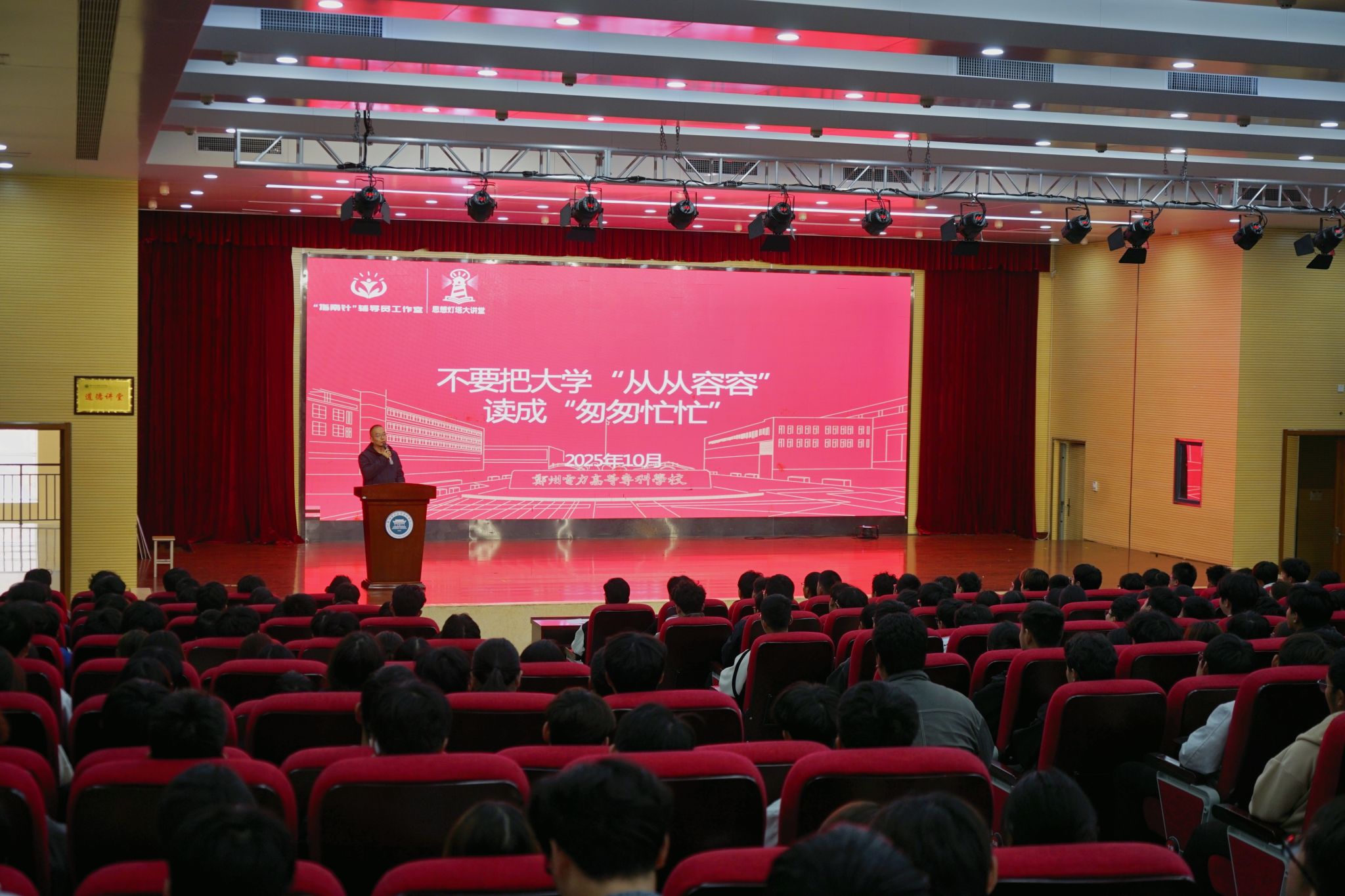 为帮助2025级学生树立职业规划意识,明晰未来发展方向,引导其尽早确立职业目标并合理规划学业路径,10月28日,学校“指南针”辅导员工作室面向电气工程学院在东阶梯教室举办思想灯塔大讲堂,聚焦“职业生涯发展第一课”,为新生提供后续发展指引。