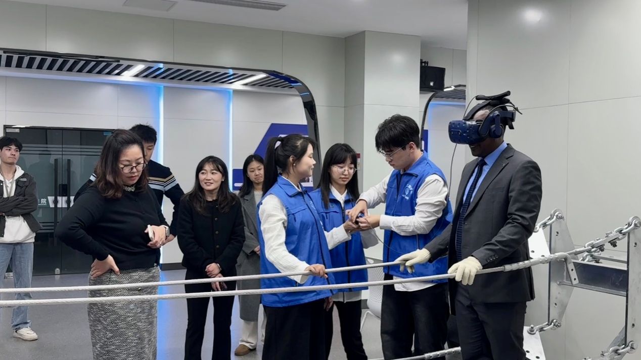 作为电力学院常态化志愿服务与国际化办学展示相结合的品牌项目,本次接待任务主要由志愿服务队的师生骨干承担。在220kV智能变电站实训基地,志愿者们运用扎实的电力专业知识和流畅的英语沟通能力,主动为来宾系统讲解了智能变电站的设备原理与教学应用。他们沉着自信的现场表现、细致周到的服务引导,不仅传递了专业知识,更展现了电专学子乐于奉献、昂扬向上的精神风貌,赢得了代表团成员的频频赞许。在绿色电力虚拟仿真实训基地,志愿者们精心组织,引导来宾亲身体验“VR高空走线”等创新实训项目。他们熟练的操作演示和耐心的互动讲解,使外宾们深度感受了前沿科技融入电力教学的魅力,获得了充分肯定。