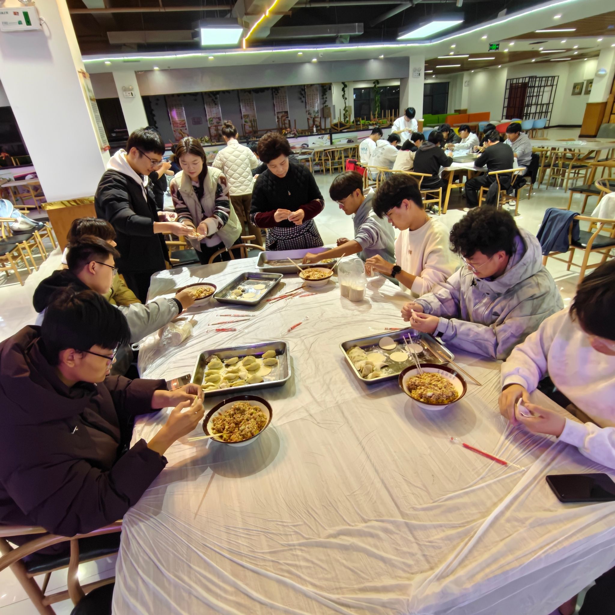 冬至,是中国传统节气中兼具自然与人文内涵的重要节点。活动现场,师生围坐协作,从擀皮、调馅到包捏成形,共同体验传统饮食制作技艺。过程中,师生们还围绕冬至文化习俗、南北饮食差异等话题展开轻松交流,在劳动与对话中深化对传统文化与现代校园生活融合的理解。当一盘盘热气腾腾的饺子端上餐桌,师生共享劳动成果、互致节日问候,暖意充盈的活动现场成为一堂生动的生活实践课与文化交流课。