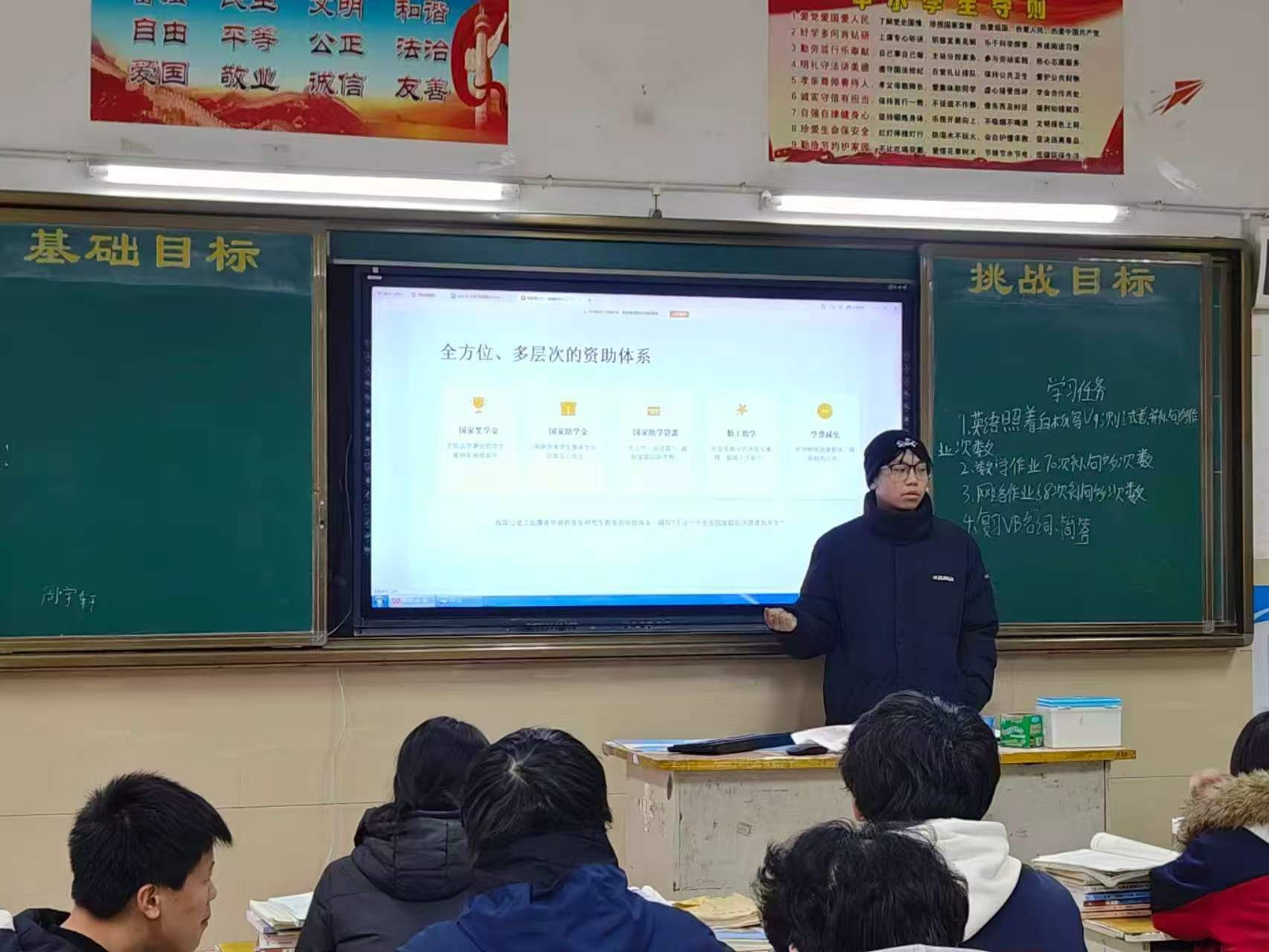 寒假期间,同学们化身“小老师”,走进家乡中小学、留守儿童之家,开展学业辅导和兴趣引导。在商丘市夏邑县的一所乡村小学,通信技术专业2024级学生李翔利用所学知识,为孩子们开设了资助宣讲小课堂,用生动的实验点燃了孩子们对科学的向往。“看到他们眼睛里闪着光,我仿佛看到了曾经的自己。”李翔感慨道。像他一样,许多受助学生用耐心辅导学业,用故事传递温暖,为乡村儿童打开眺望世界的窗口,让知识的光芒照亮成长之路。