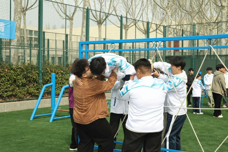 本次活动由专业老师带领,围绕“自助”与“互助”的成长主线,精心设置了“不倒森林”“蒙目障碍”“翻山越岭”“穿越电网”等富有挑战性与教育意义的团队项目。在“不倒森林”项目中,同学们在快速移动中接替长杆,深刻体会到专注与默契协作的重要性;“蒙目障碍”是通过一对一语言指引完成障碍穿越,在信任与沟通中克服视觉限制;“翻山越岭”需要连续完成攀爬翻越,不断突破心理障碍,考验了勇气与坚持;“穿越电网”则对团队的策略规划与执行力提出更高要求。同学们纷纷表示,活动中不仅感受到来自同伴和学校的温暖支持,身心得到了有效放松,更在挑战中激发了自我潜能,深化了对信任、协作与感恩的理解。