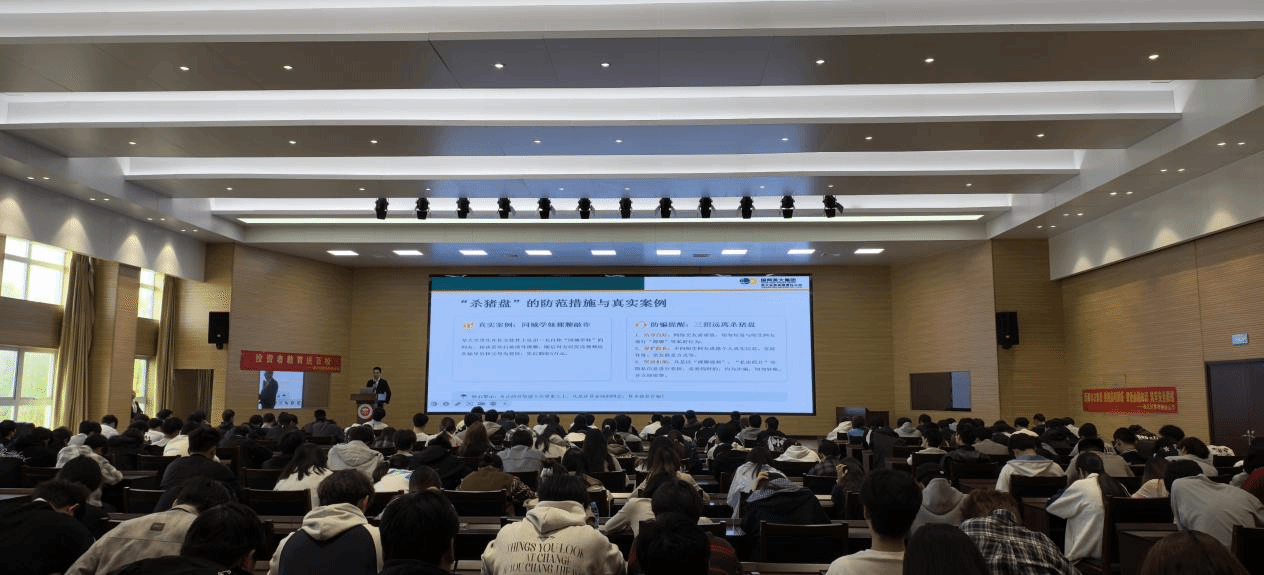 本次讲座围绕大学生投资安全和防止诈骗这一主题展开,英大证券投资顾问结合大学生群体特点,系统讲解了非法证券活动、“杀猪盘”、网络诈骗等常见骗局的作案手法与防范要点,通过真实案例拆解诈骗套路,同时科普了适合大学生的低风险投资工具,引导学生树立理性投资观念。现场设置互动答疑环节,讲师针对同学们提出的金融安全问题逐一解答,帮助大家掌握实用反诈技巧。