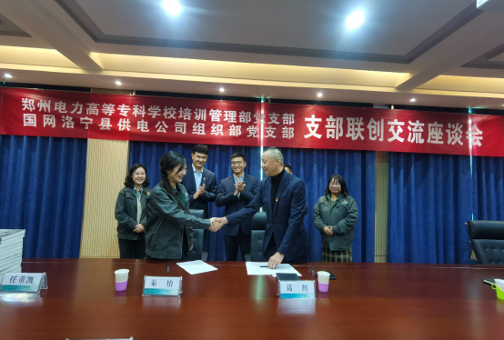 10月27日上午,培训管理部党支部与国网洛宁县供电公司组织部党支部在国网洛宁供电公司会议室举行基层党组织联创共建责任书签约仪式暨联创共建交流座谈会。本次活动旨在将培训管理部的教育培训资源与洛宁供电公司的企业党建先进经验进行结合,共建“搭台”,党建“唱戏”,推动双方的党建工作质量的提升。培训管理部党支部书记葛辉、支部委员张潮、任重凯、国网洛宁县供电公司组织部党支部书记秦怡、副书记马娟娟、国网洛宁县供电公司党建部主任李园园参加了此次签约仪式并进行了座谈。参加此次活动的还有两个党支部的其他党员同志。