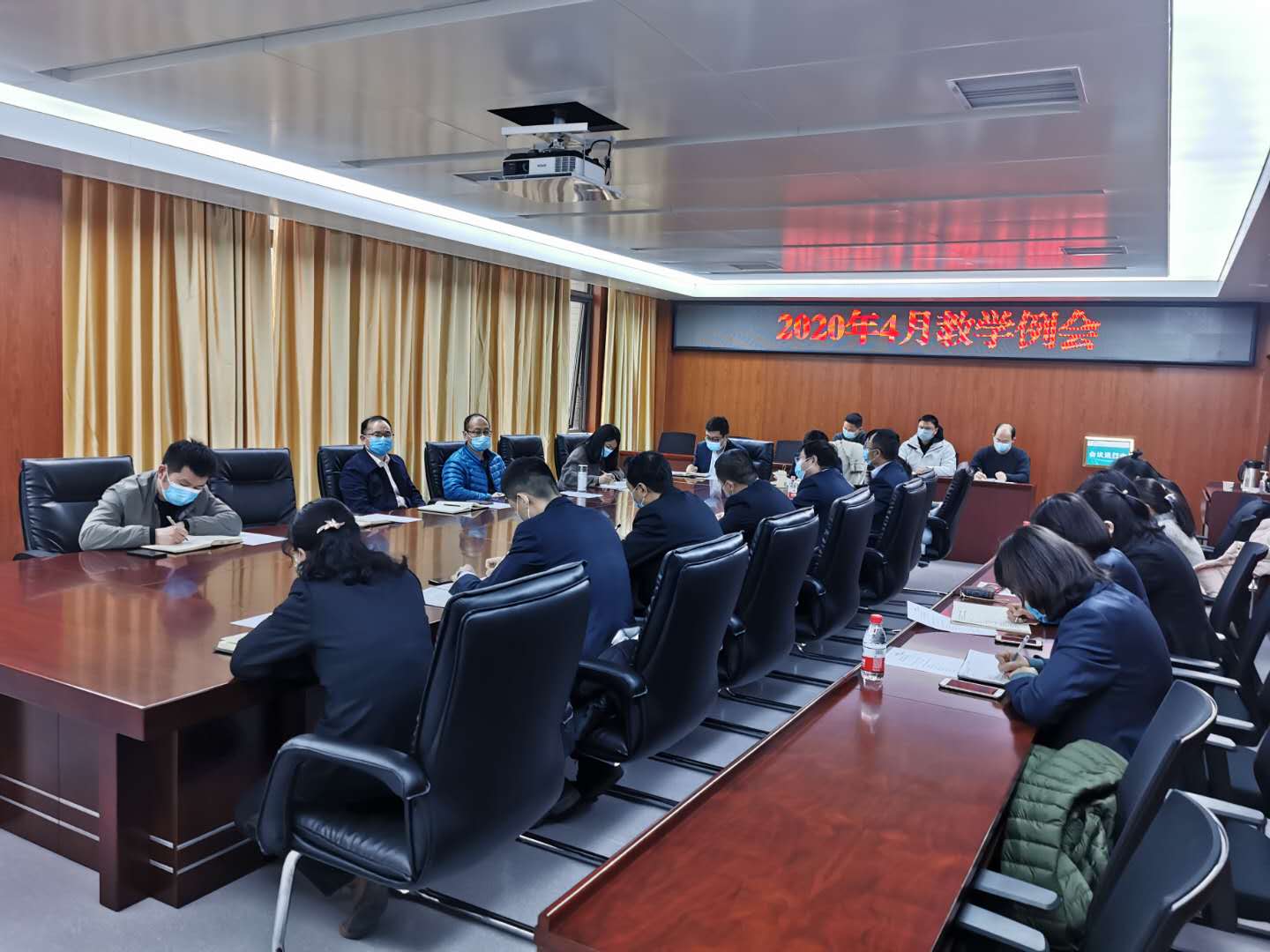 4月教学例会10日在办公楼四楼会议室召开,校长杨建华、副校长胡斌、教务处和教学院部相关负责人参加了此次会议。