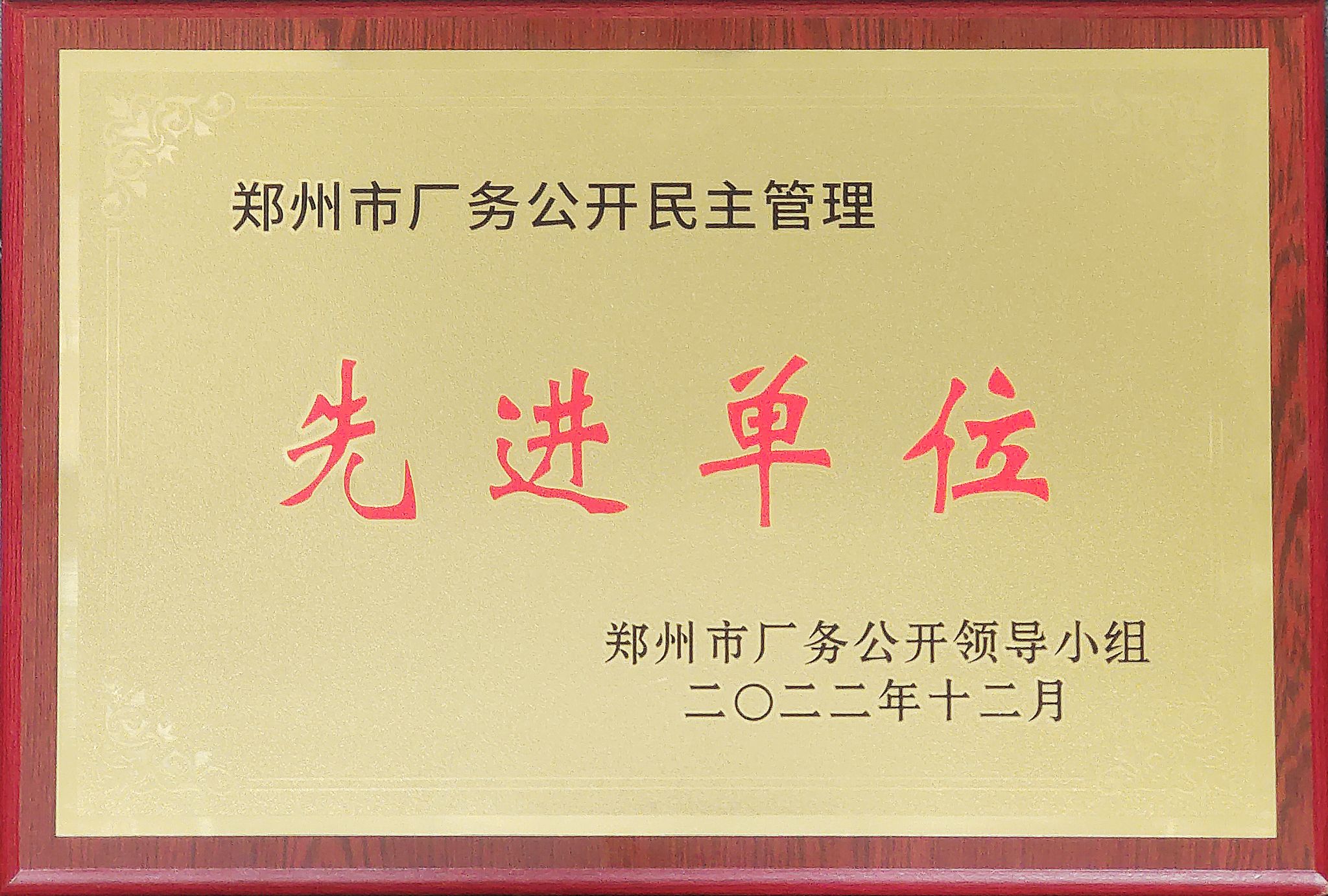 近日,郑州市厂务公开领导小组下发表彰文件,学校荣获“郑州市厂务公开民主管理先进单位”称号。