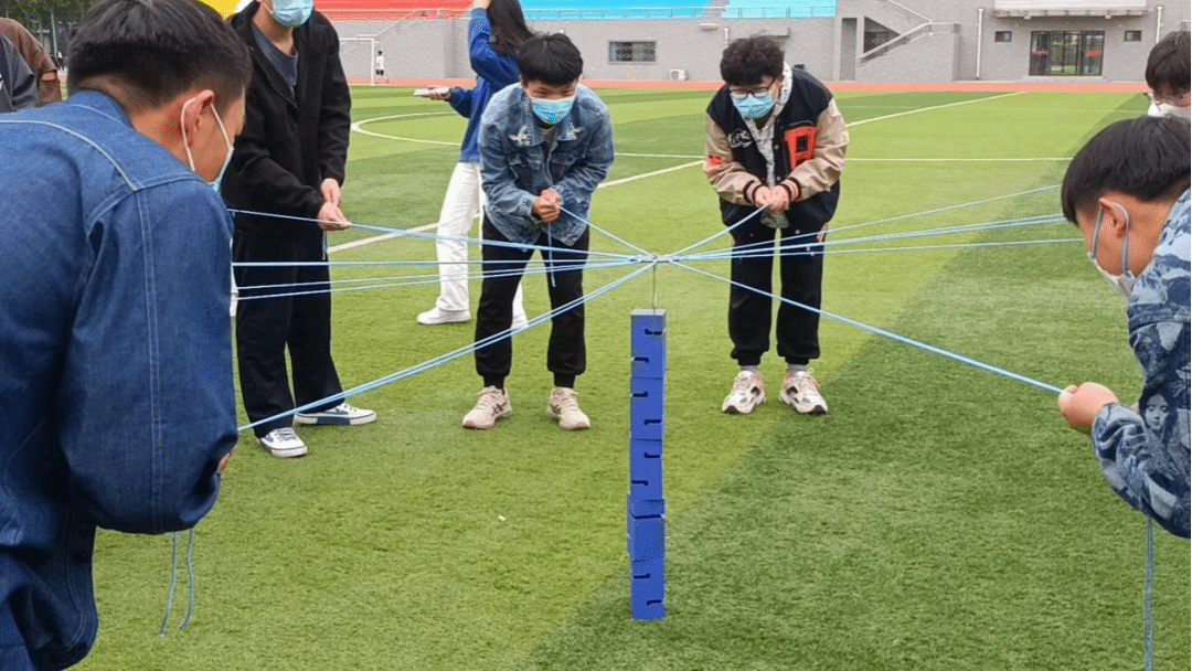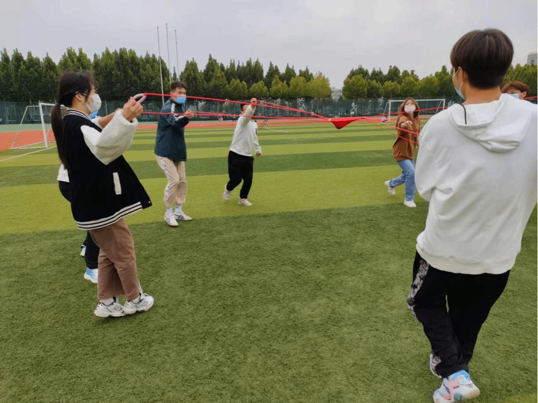 此次心理素质拓展活动由大学生心理健康教育中心老师和心理健康协会志愿者共同带领,分为四个小组进行,共同完成“手解千千结”、“相识同心圆”、“不倒森林”、“合作搭建”等多项活动挑战。每个团队在共同协作中尝试不同的策略,有的团队选择由一人指挥,其他人员配合完成,有的团队选择共同商讨完成。同学们在多次失败的尝试后总结经验,最后在欢声笑语中顺利完成挑战。
